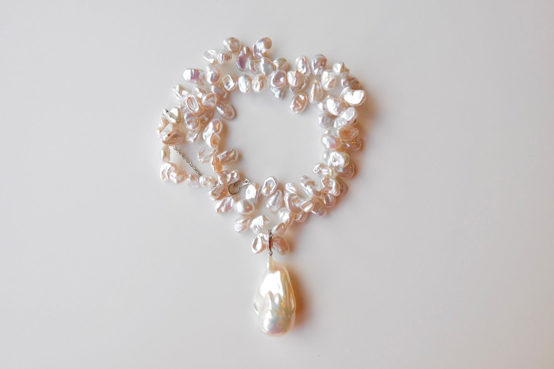The Muse Pendant Set is a composition of contrast — delicate seed pearls paired with a bold, sculptural baroque pearl pendant. All components are crafted from sterling silver, ensuring both quality and versatility. The pendant is fully detachable, designed to be reimagined with your favorite chains and styles. Whether worn as a statement or layered with subtle strands, this piece adds a hint of opulence and creative freedom to your daily ritual.